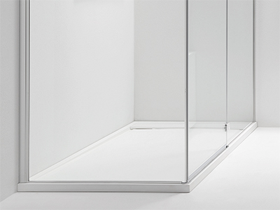 Piatto doccia realizzato in Arock® disegnato da Idelfonso Colombo per TDA. Si caratterizza per la superficie di calpestio antisdrucciolo e il deflusso laterale, che la mantiene sempre asciutta