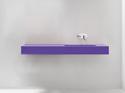 Mensola realizzata in Arock®, disponibile in 48 colori.02, ottenuta da stampo nelle dimensioni 17x54/63x12 cm. Tipologia di installazione orizzontale