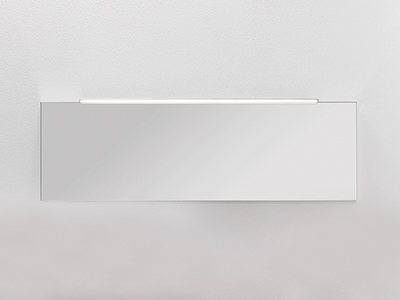 Lineo è uno specchio dall'impatto visivo solido e imponente. Si caratterizza per il profilo in alluminio. Qui lo vediamo in abbinamento alla lampada KENOBI