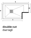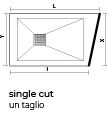 AURELIO È IL PIATTO DOCCIA A FALDA UNICA CON POSSIBILITÀ DI INSTALLAZIONE A FILO O SU PAVIMENTOÈ possibile effettuare uno o due tagli solo sul lato opposto la piletta di scarico. Il taglio singolo è disponibile sia grezzo che in finitura