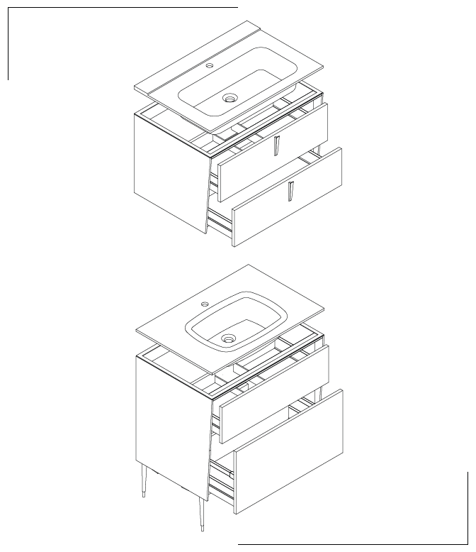 a coordinated handle in addition to the Premi-Apri System. On the Arock® integrated top washbasin there is a backside support threshold dedicated to containing and a under-top drip-catcher profile