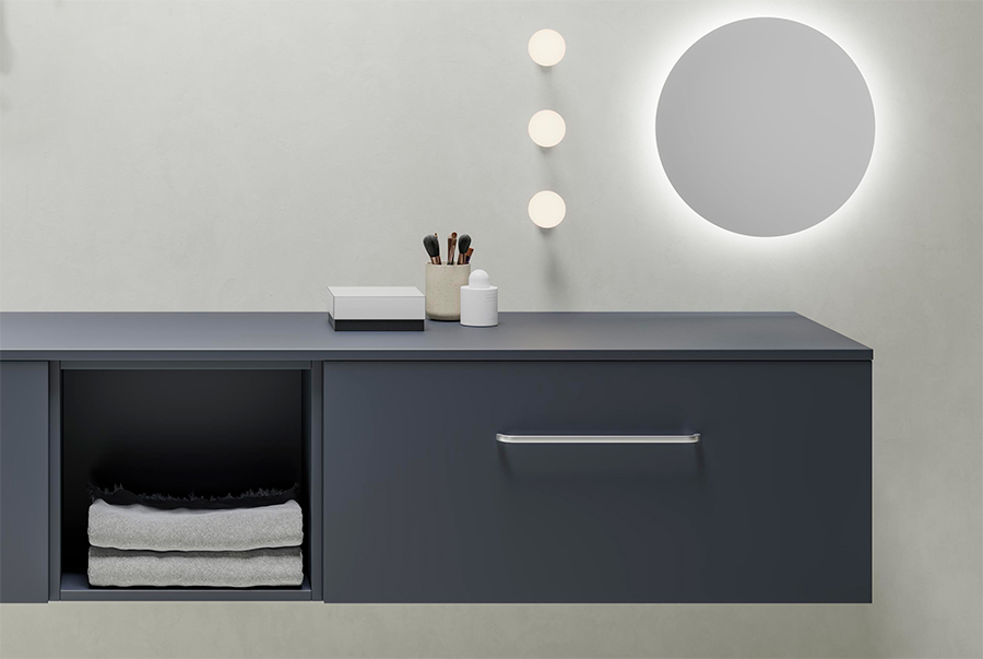 materiale composto da oltre il 94% di quarzo naturale, che lo rende straordinariamente duro e resistente. E' una superficie non porosa e altamente resistente alle macchie, di facile pulizia e adatto alla stanza da bagno in quanto idrofobico. Disponibile in sei finiture per essere abbinabile a ogni tipo di stanza da bagno