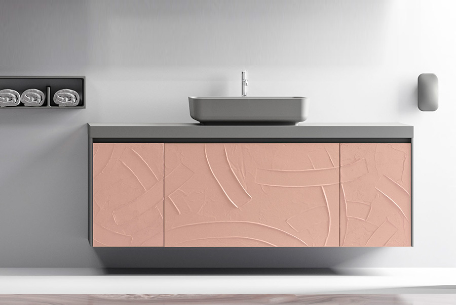 materiale ceramico compatto con superficie decorata e smaltata. E’ estremamente resistente, impermeabile, di facile pulizia e adatto alla stanza da bagno in quanto idrofobico. Disponibile in 12 finiture per essere abbinato a ogni tipo di stanza da bagno