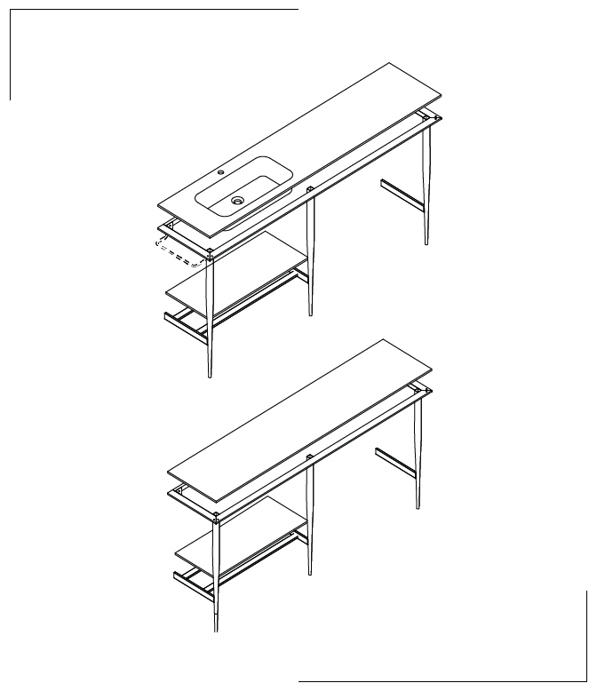 è una struttura telaio totalmente in alluminio in due profondità con portasalviette opzionale, ripiano e lavabo filopiano integrato in Arock® definita Console. Le gambe a terra portanti a sezione variabile integrano la forma tonda e quadra, esclusivo profilo smussato sottotop con finiture anodizzate e verniciate